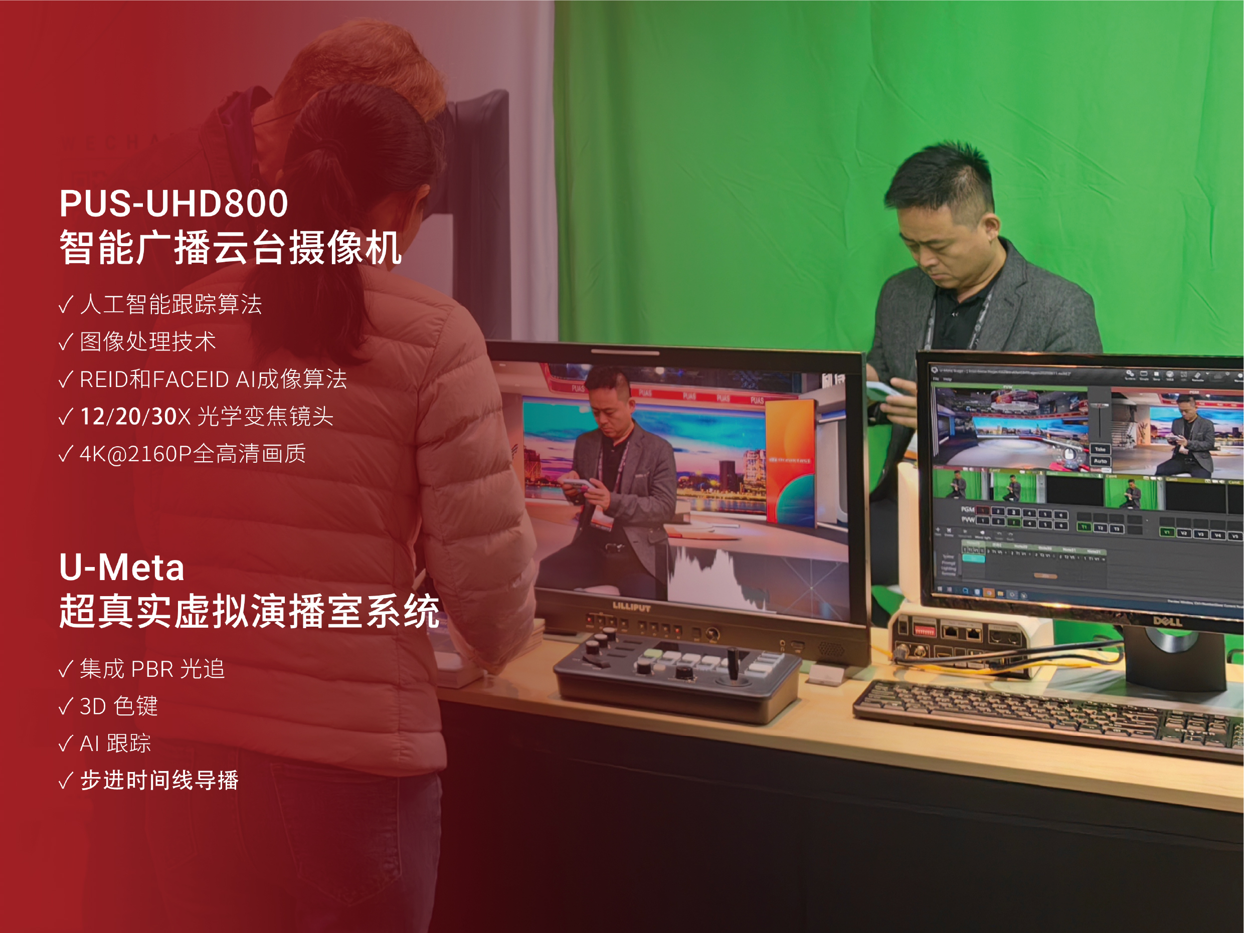 本次展会上,普奥视重点展示了全新升级的UHD800 FREE-D PTZ摄像机与U-Meta虚拟演播室系统深度融合的全流程解决方案。系统集成了高精度实时人工智能跟踪算法、ReID和FaceID AI成像技术,以及超低延迟渲染输出与合成功能,实现多机位同步和复杂场景实时交互。即使在苛刻的高帧率、高动态范围(HDR)环境下仍表现卓越,吸引了众多影视制作公司、广电机构与技术专家驻足交流。
